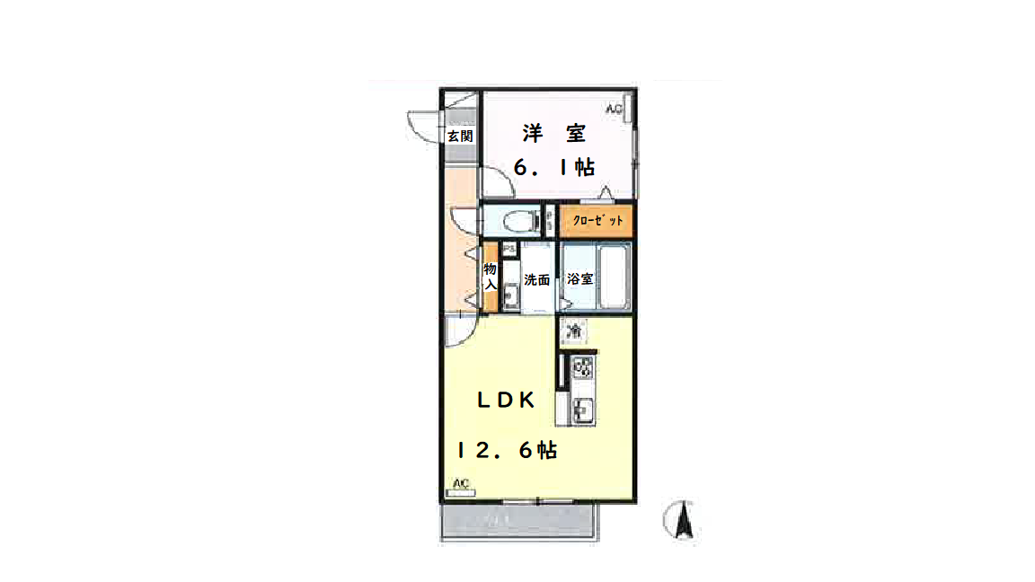 洋室6.1帖、LDK12.6帖